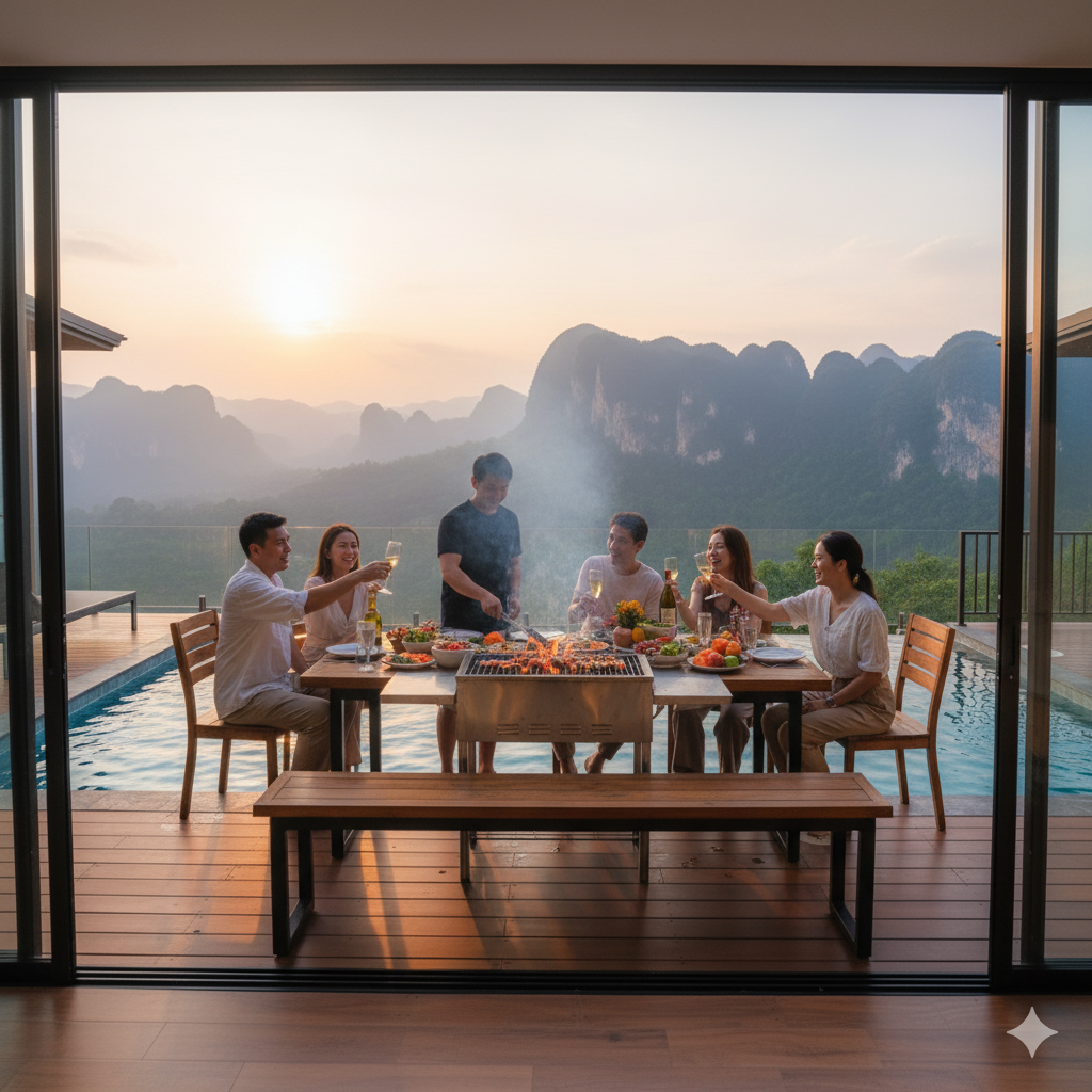 พร้อมเตาและอุปกรณ์ครบ — แค่เตรียมของอร่อยมาด้วยหัวใจที่พร้อมพักผ่อน