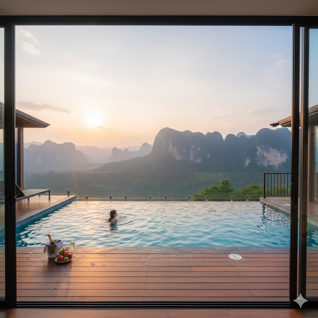 สระว่ายน้ำส่วนตัวพร้อมวิวภูเขา ให้คุณได้ผ่อนคลายท่ามกลางธรรมชาติ